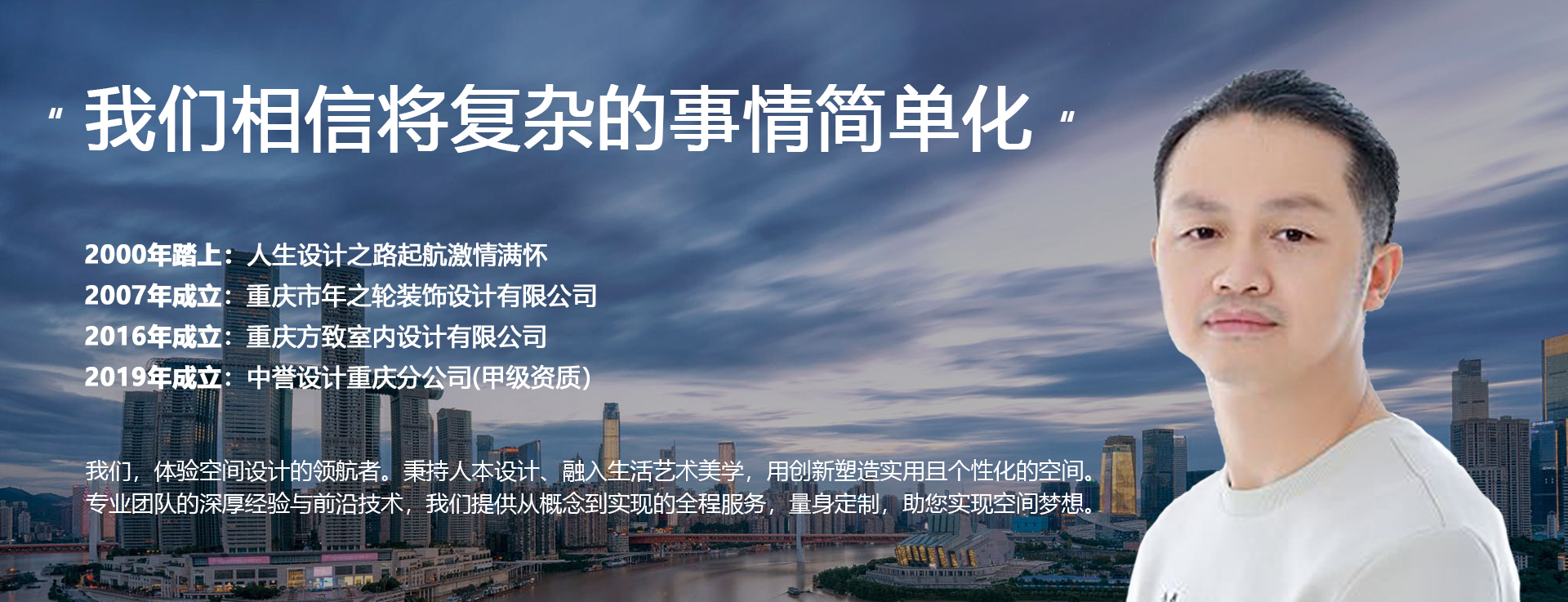 關于我們重慶方致室內設計有限公司,自1999年美院畢業起專注于設計一件事,經過8年積累,于2007年立足重慶,成立年之輪裝飾設計有限公司。2016年,進一步專化服務,成立方致室內設計有限公司,專業致力于精品酒店設計、餐廳設計、會所設計及商業空間設計,為客戶提供具有品牌實力的設計服務。
